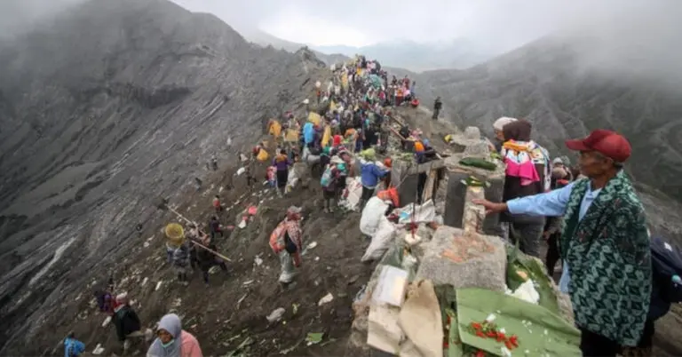 Selain itu, mereka juga menjalankan ritual tahunan yang disebut “Yadnya Kasada”, di mana mereka melempar sesajen ke kawah gunung sebagai bagian dari upacara tersebut.